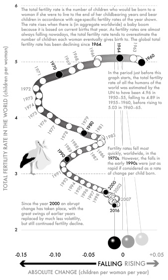 *Dorling, D., 2020. Data | SLOWDOWN. [online] Dannydorling.org. World - total fertility rate, 1960–2016. Available at: https://www.dannydorling.org/books/SLOWDOWN/Images/Figs1/Fig%2032-World%20-%20total%20fertility%20rate,%201960%E2%80%932016.jpg [Accessed 22 April 2023].
