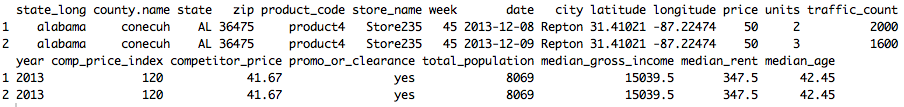 Sales units (log scale) regressed on price (log), controlling for the impact of seasonal variables (year, week and weekends), promo and clearance activities and foot traffic (log scale)